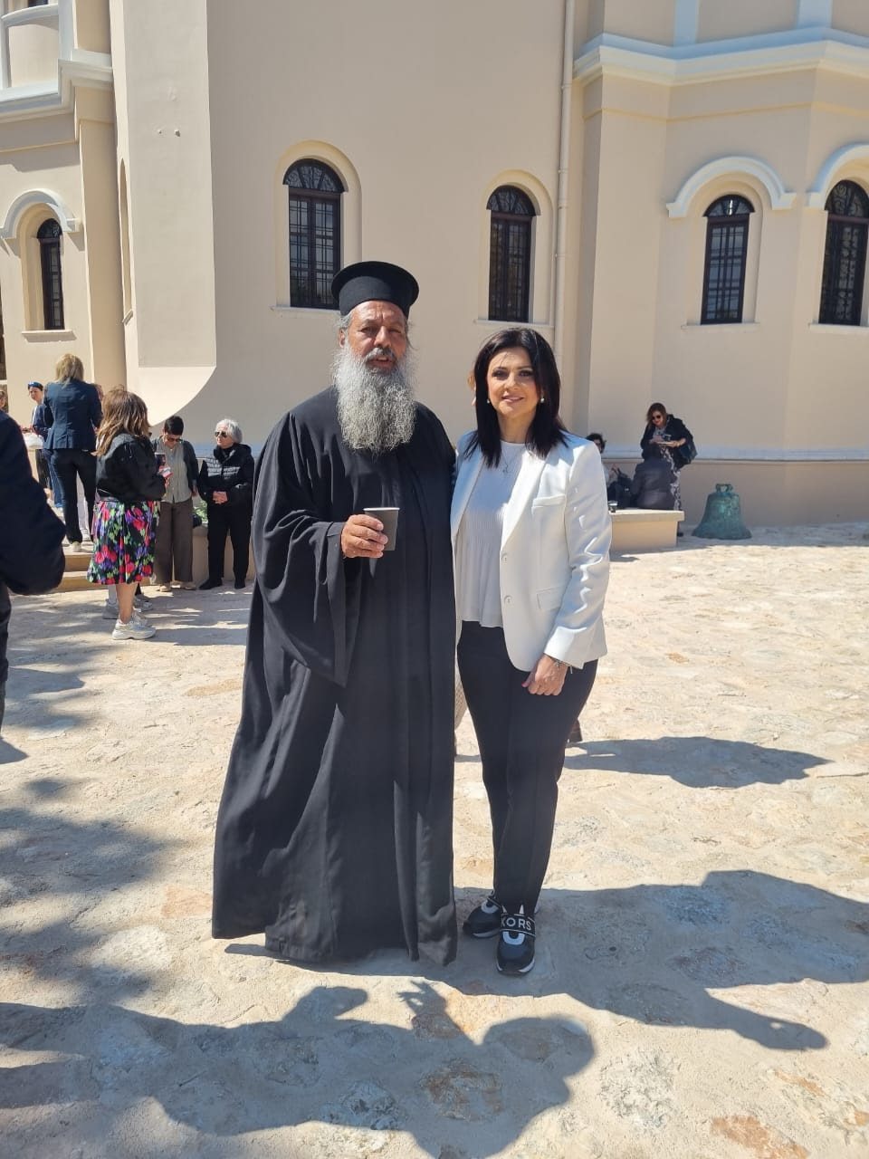 Τέλος, η υποψήφια βουλευτής συναντήθηκε και συνομίλησε, μεταξύ άλλων, με τον πρώην Υφυπουργό Άμυνας Αλκιβιάδη Στεφανή, τον Περιφερειάρχη Γιώργο Χατζημάρκο, τον Αντιδήμαρχο Στράτο Αμύγδαλο, τον Μητροπολίτη κ.κ. Χρυσόστομο και τη σύζυγο του Πρωθυπουργού Μαρέβα Μητσοτάκη, οι οποίοι παρευρέθηκαν στο νησί για το σημαντικό γεγονός των εγκαινίων του Ι.Ν. Αγίου Γεωργίου (Σαντραπέ).