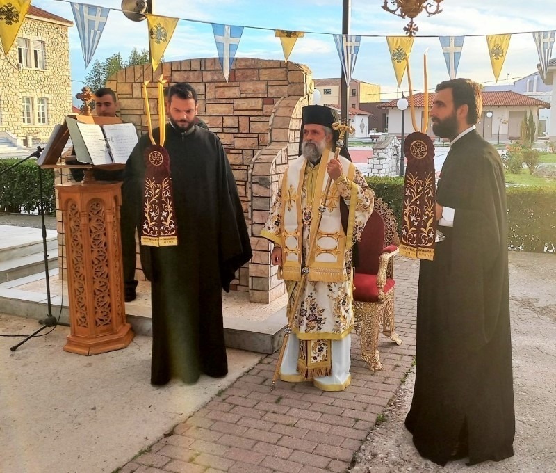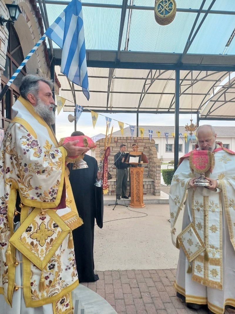 Την Θεία Λειτουργία τέλεσε ο Θεοφιλέστατος Επίσκοπος Στρατονικείας κ. Στέφανος, τη κανονική αδεία του Σεβ. Μητροπολίτου Τρίκκης κ. Χρυσοστόμου, συμπαραστατούμενος υπό του στρατιωτικού Ιερέως π. Σεραφείμ Καλτσουκαλά. Εκκλησιάσθηκαν ο Διοικητής της Σχολής Ταξίαρχος Ιωάννης -Νεκτάριος Κορέλης, οι Αξιωματικοί και οι σπουδαστές.