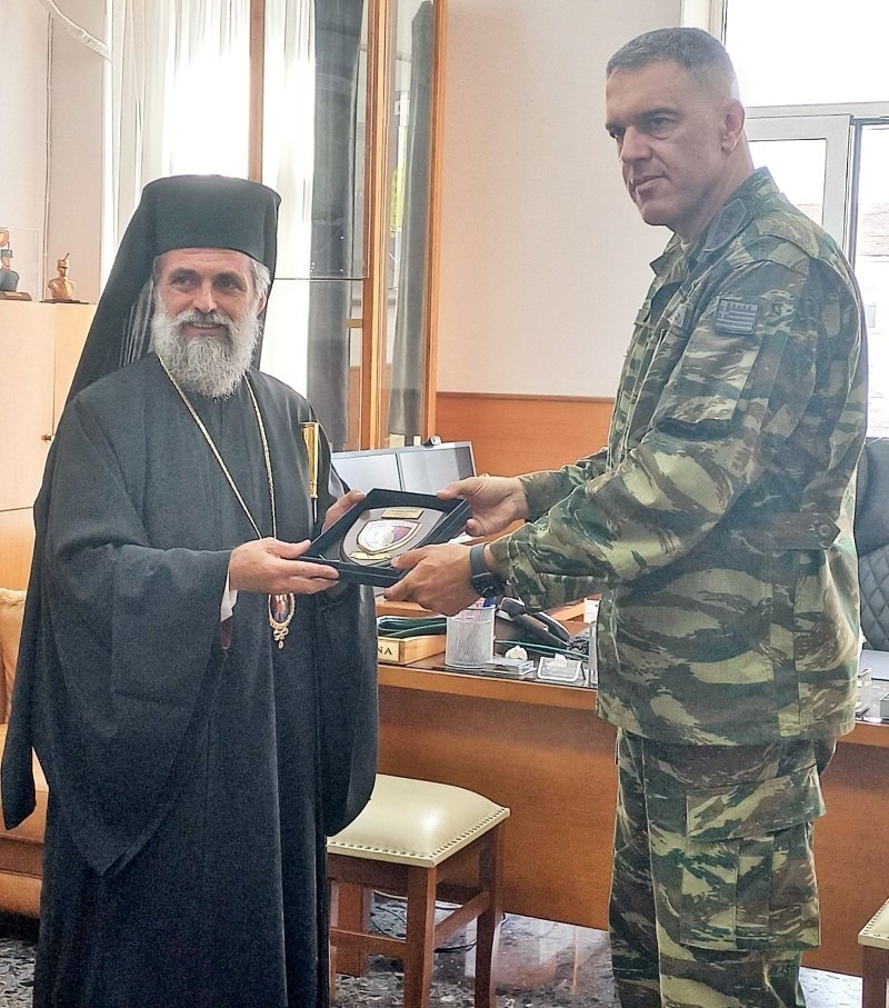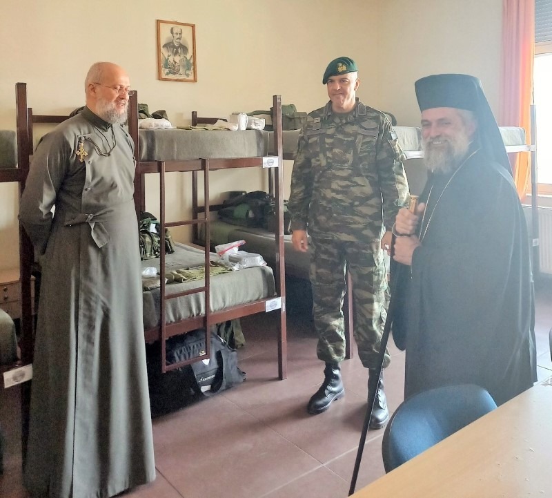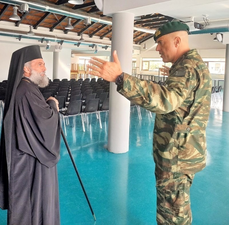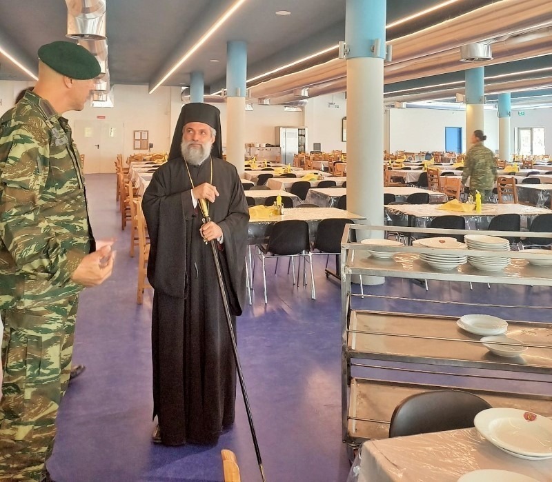 Μετά το πέρας της Θ. Λειτουργίας ο κ.Ταξίαρχος, τιμής ένεκεν δώρισε στον Θεοφιλέστατο τον θυρεό της Σχολής και τον ξενάγησε στις εγκαταστάσεις, επισκέφθηκαν δε και τον θάλαμο όπου διέμενε ο Θεοφιλέστατος κατά τήν φοίτησή του στη Σχολή.
