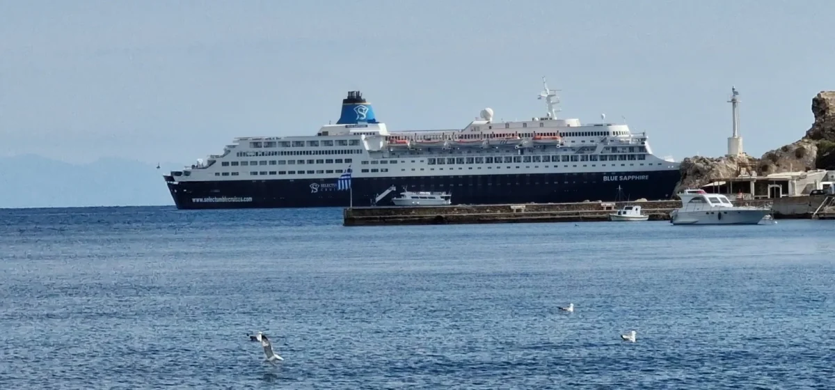 Η παρουσία του BLUE SAPPHIRE στη Λέρο αποτελεί ένα αισιόδοξο μήνυμα για τον τουρισμό, με την έναρξη της σεζόν να πραγματοποιείται φέτος ασυνήθιστα νωρίς.